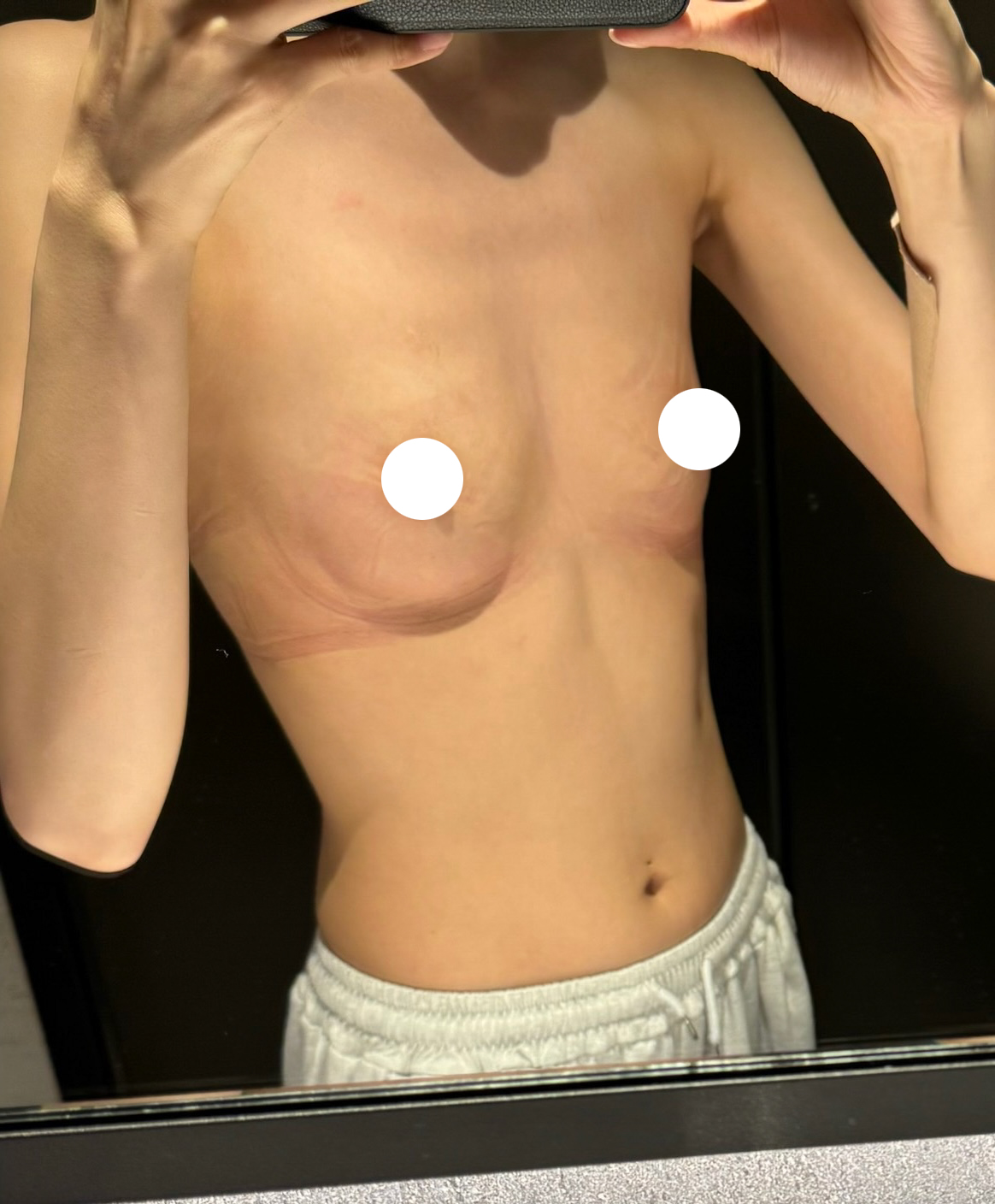오랜 친구(여자) 두 명 한테만 전후 사진 보여줬는데 원래 제 가슴같다고 ㅋㅋㅋ