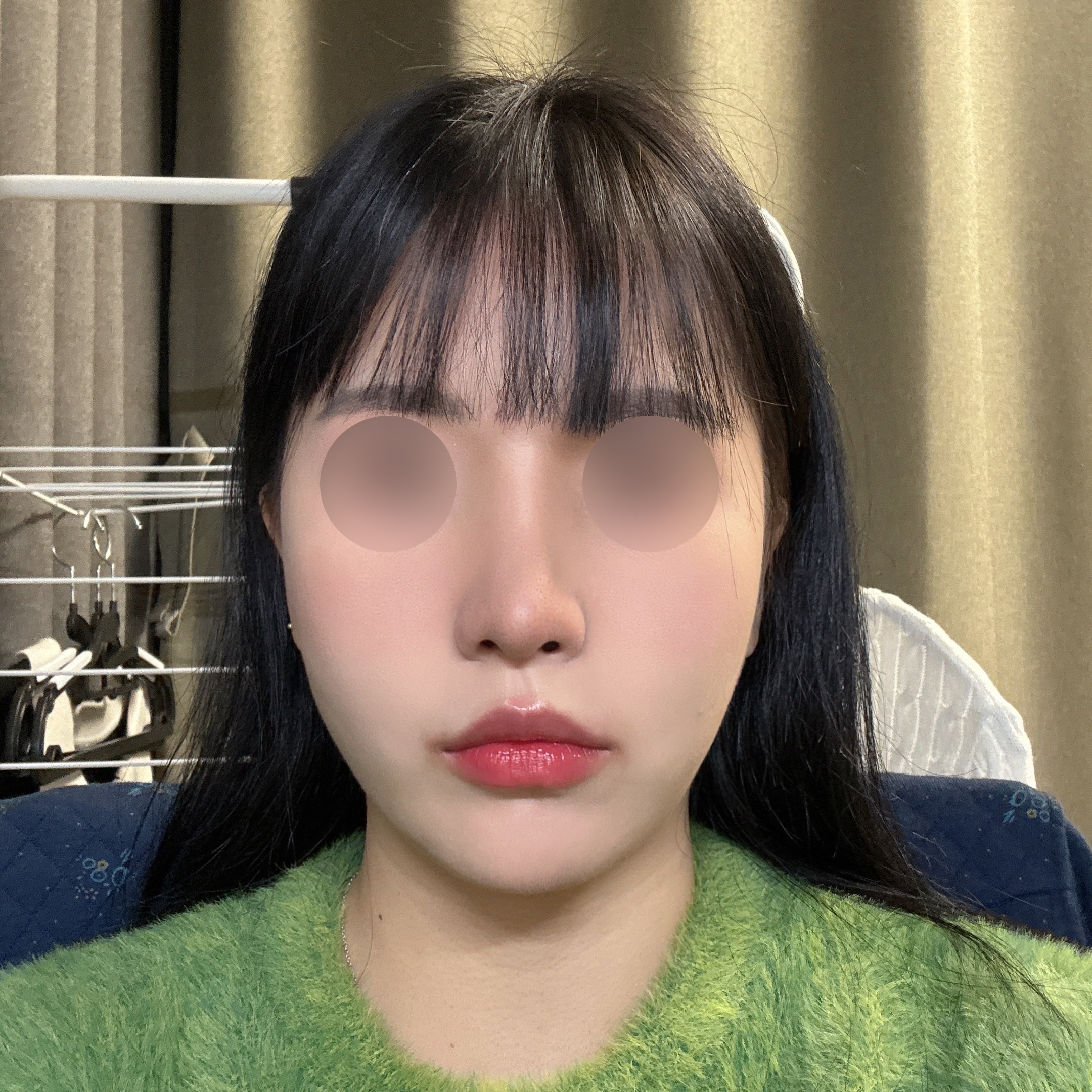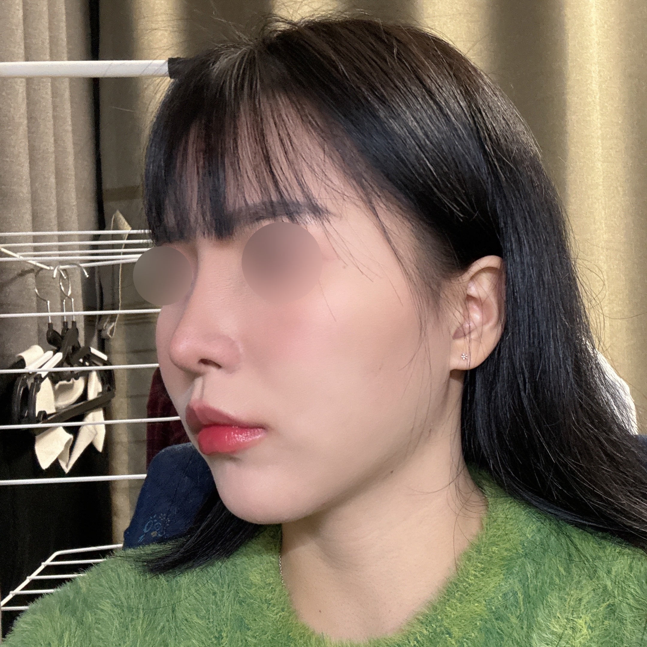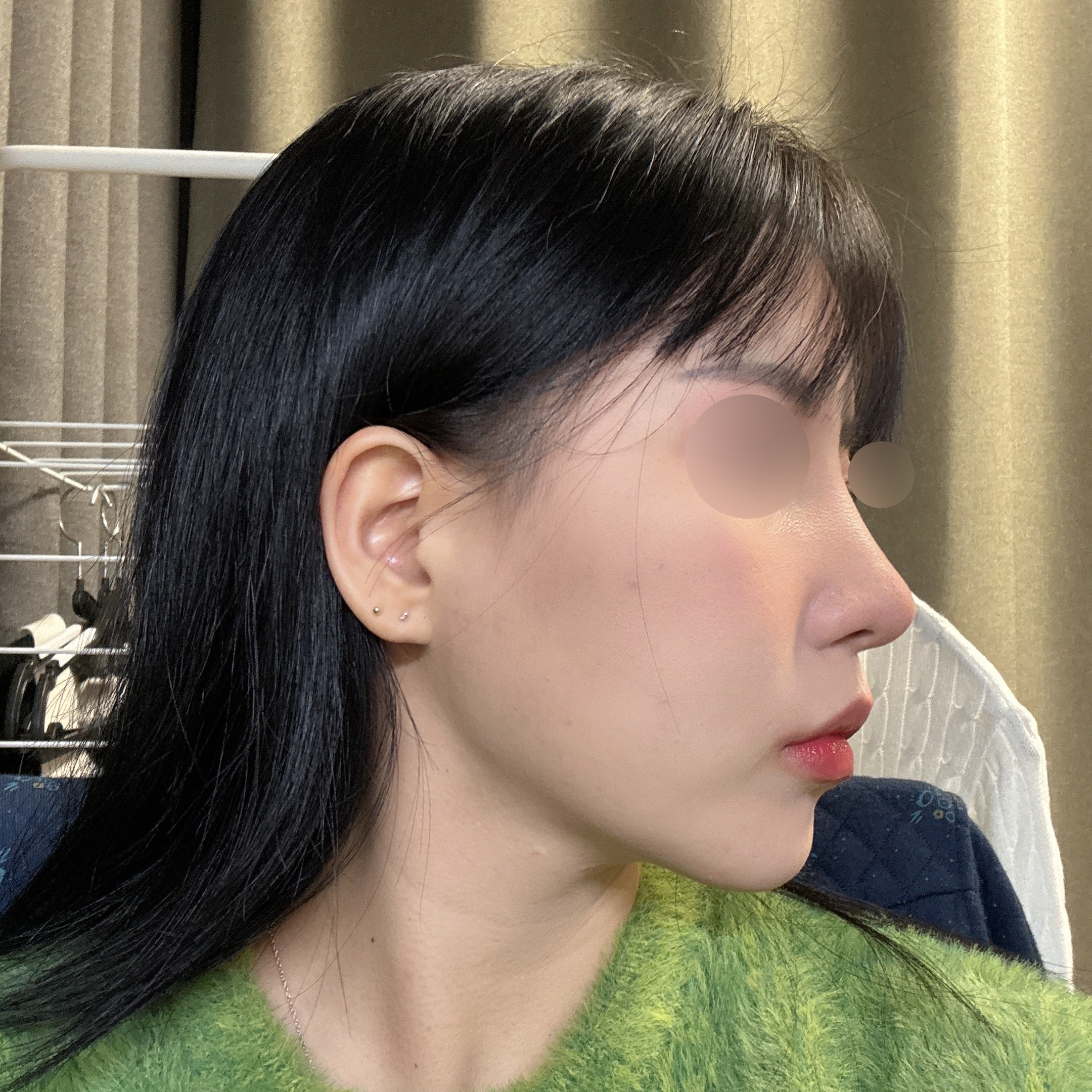 솜 빼고 나니까 숨도 편하게 쉬어 지고 모양도 너무 맘에 드네용 ㅎㅎ 코끝 : 비중격+기증 콧대 : 실리콘 절골 , 복코 교정