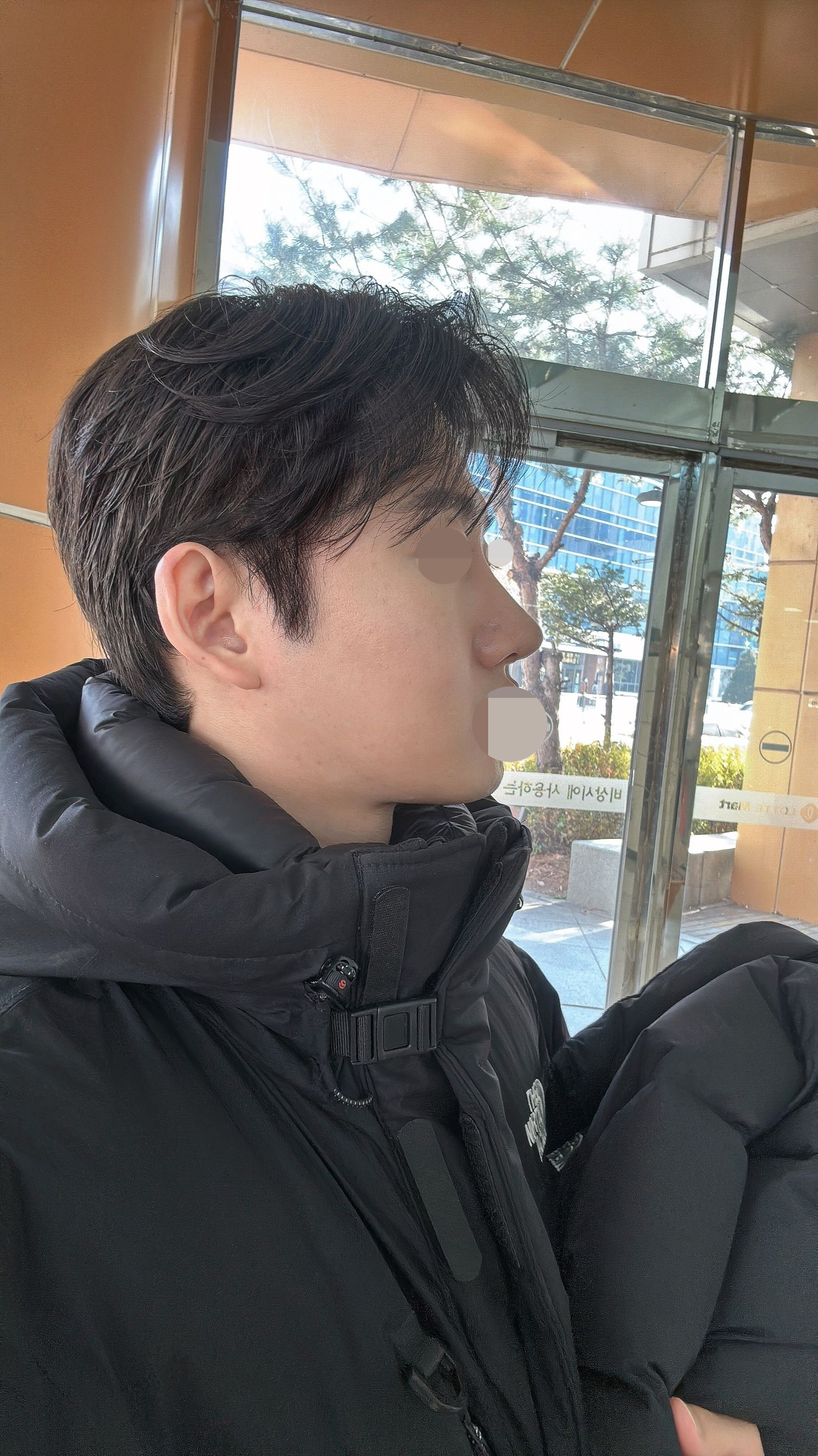 3달차 - 미간쪽 붓기가 쭉 빠지면서 코가 일자로 잡혀가는중. 코 끝도 점차 줄어들고 있습니다